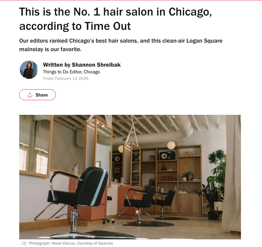 Press and Perspective Timeout - Sparrow named #1 Hair Salon in Chicago Heart Be Your Guide - Sparrow For Everyone Timeout - Best Chicago Hair Salons